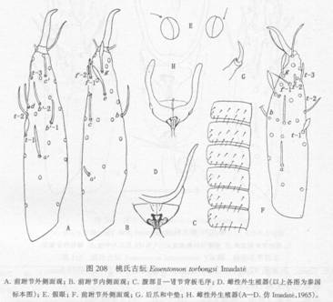 全长约1000μm。头长122μm,宽99μm。假眼大而突出,长约20μm,头眼比=6.0。前跗长97μm,爪长19μm,跗爪比=5.1。背部感觉器t—1鼓槌状,基端比=1.25。t—2尖细,t—3正常。外侧感觉器a、b和c的长度相仿,d细长,e和g匙形,f—...