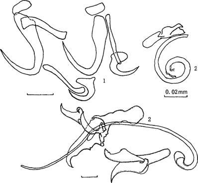 毛;阳茎短粗,有阳茎针多枚。...