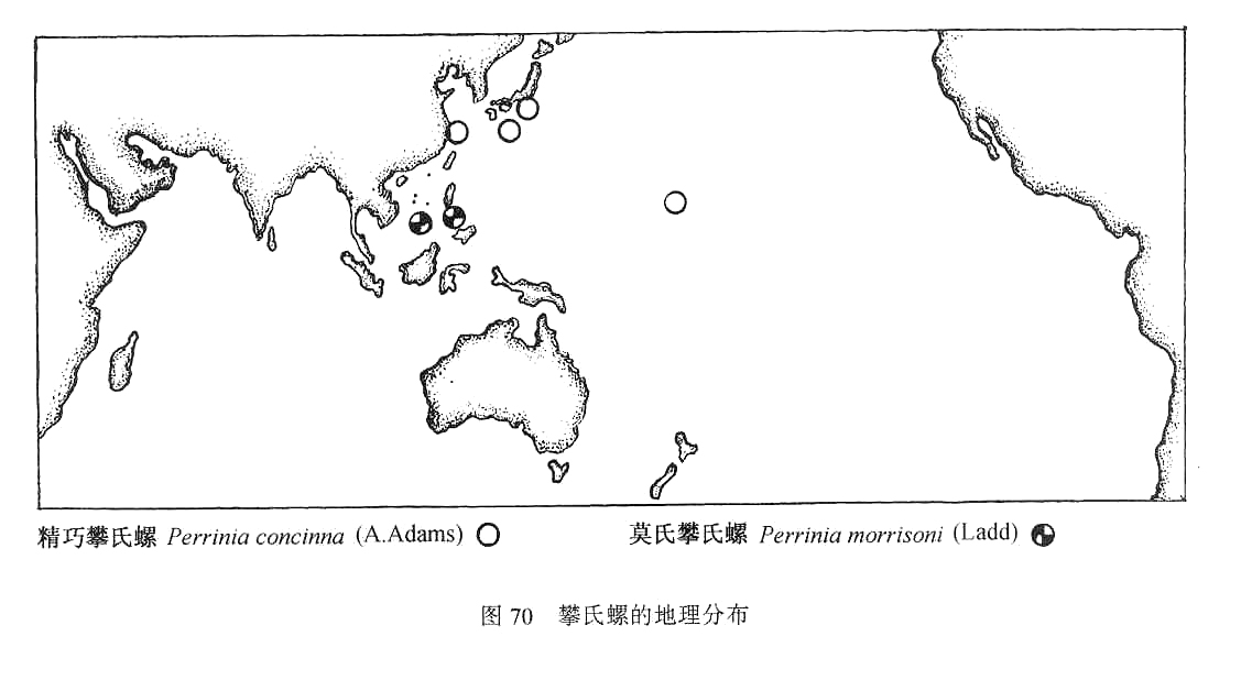 纹呈波浪状。壳顶部淡白色。缝合线深。壳口垂直,呈梨形,紫棕色。口缘淡白色,连续,结实,...