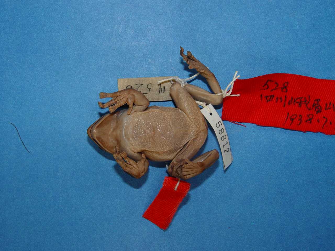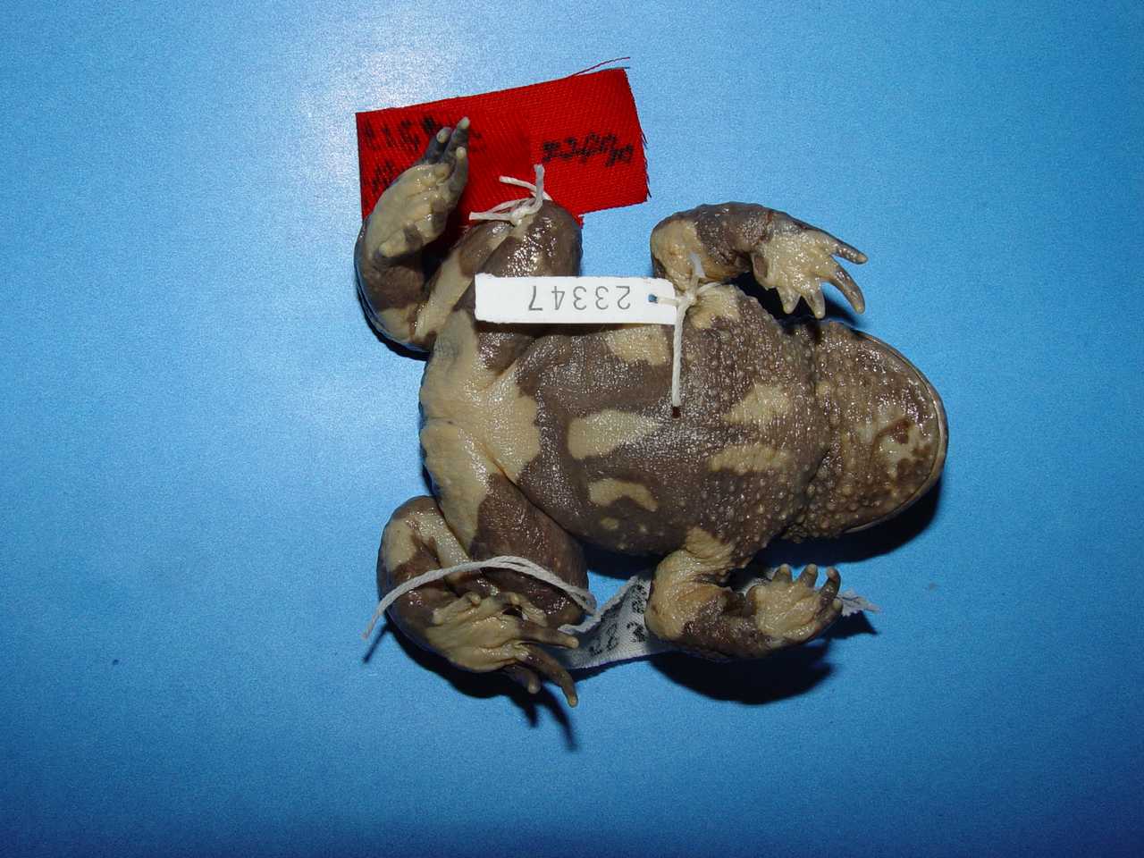 四肢背面瘰粒发达,且与体背者一致。雄蟾仅趾基部具微蹼,前