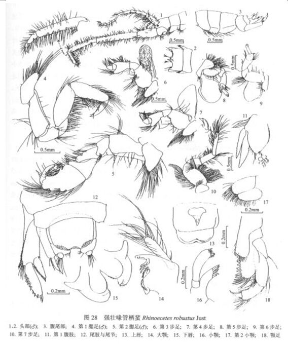 前跗长约120—122μm,爪长22—23μm,跗爪比=5.3—5.5。背部感觉器t—1短棒状,基端比=1.1—...