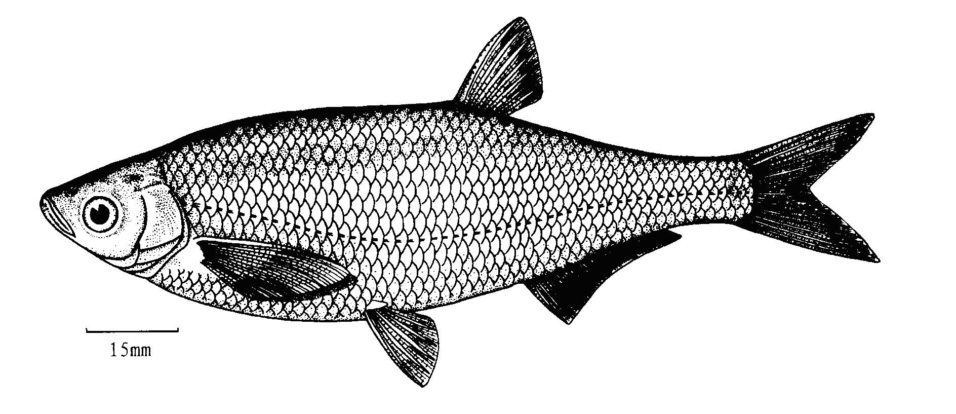 围尾柄鳞18—20。第一鳃弓外侧鳃耙15—18。下咽齿3行,2·4·5(4)—4 (5) ·4 ·2。脊椎骨4+40。