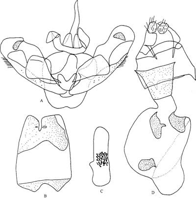 后足胫节背面又有4对亚端距,雄