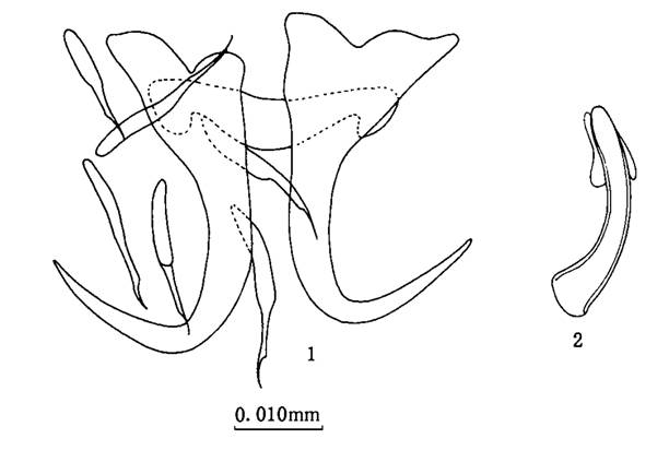 ,体长0.476—0.666mm,体宽0.096—0.128mm.后吸器0.057—0.066×0.076—0.080mm .