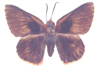 ,顶角附近外缘毛由黑色鳞片所组成,共余缘毛为褐色,臀角附近浅褐色。后翅从基角至前缘1/3处灰白色,顶...
