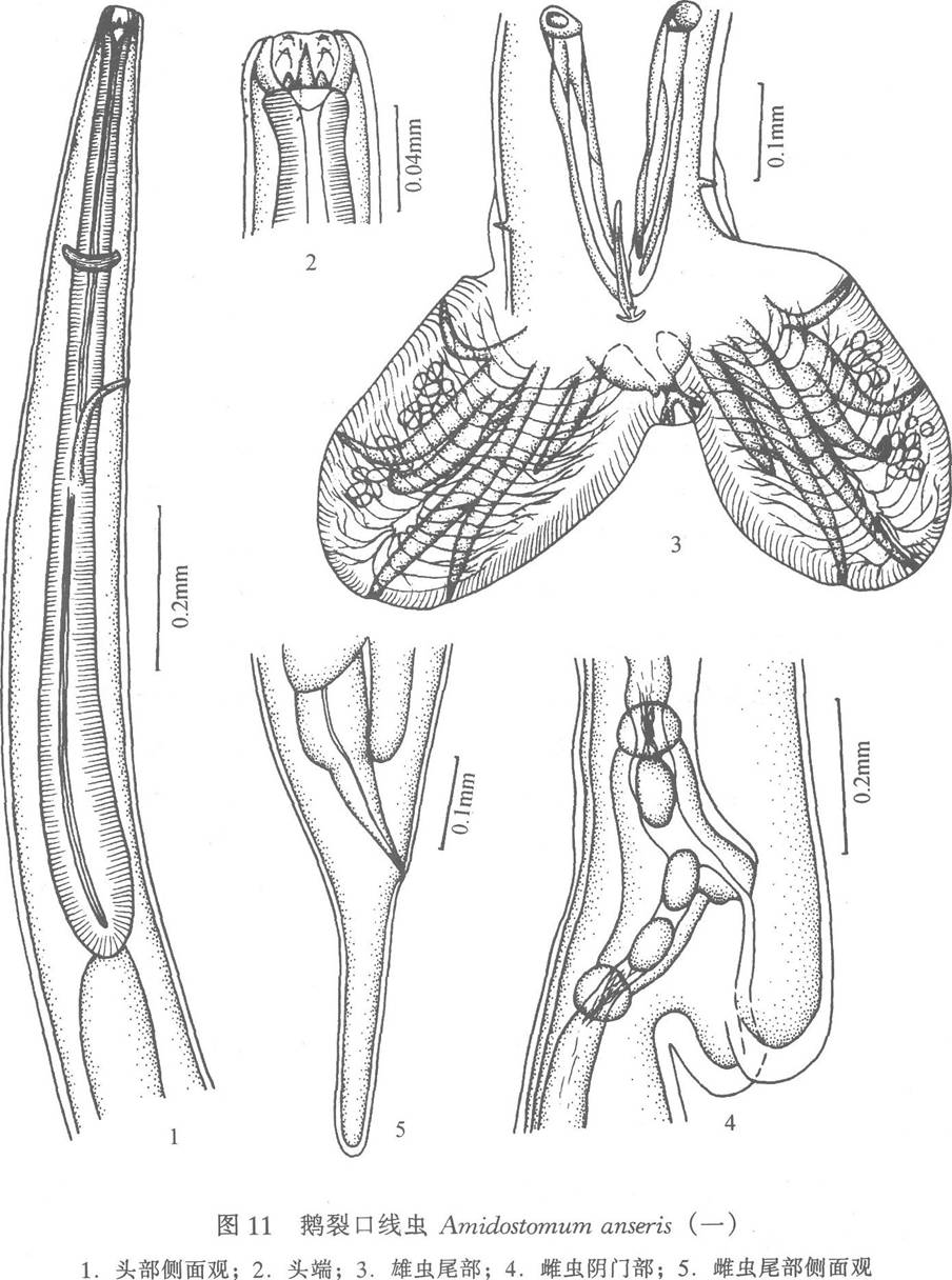 体细长线状,生活时灰白色或淡红色。体表具纤细横纹。口孔向前,口囊发达,角质杯状。口底部有3个三角形的尖齿,其中背侧1个为大齿,尖端接近口囊的上缘;近腹侧的2个为小齿,高度为口囊的一半。口囊前缘有1对乳突,1对头感器。食道棒状,向后逐渐膨大,内有3个角质板,由...