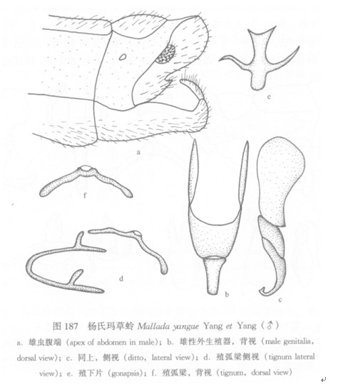 7mm。头棕褐色,触角丝状黄褐色;身体棕褐色(雌)或黄褐色(雄),腹部腹面色稍浅;胸足棕黄色,前足跗节灰褐色,各节间有白环;前、后翅黄褐至棕褐色,内带双线,中带双线,在M1及M2脉处向外突出,然后达后缘,顶角内有...