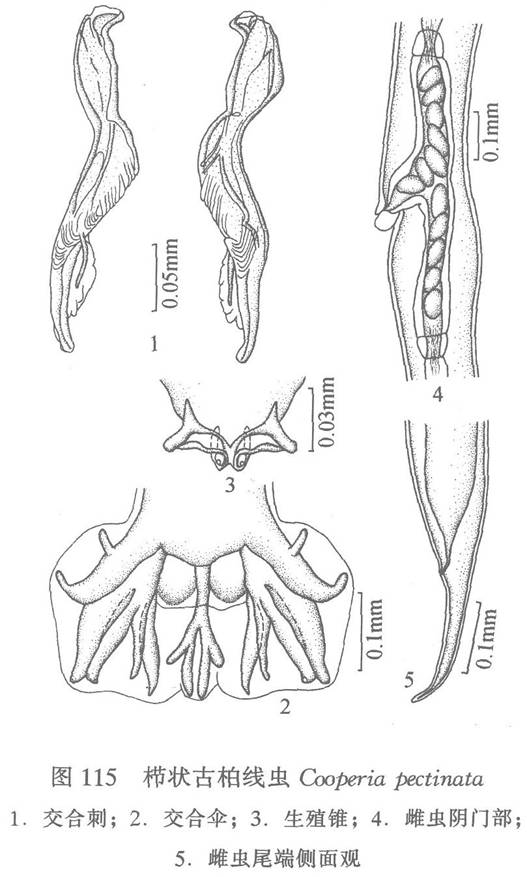 :体长5.52—7.00 mm,最大宽度0.139—0.160 mm。交合伞由3叶组成,背叶小而明显。腹腹肋细小,侧腹肋粗壮,均达伞缘。前侧肋和中侧...
