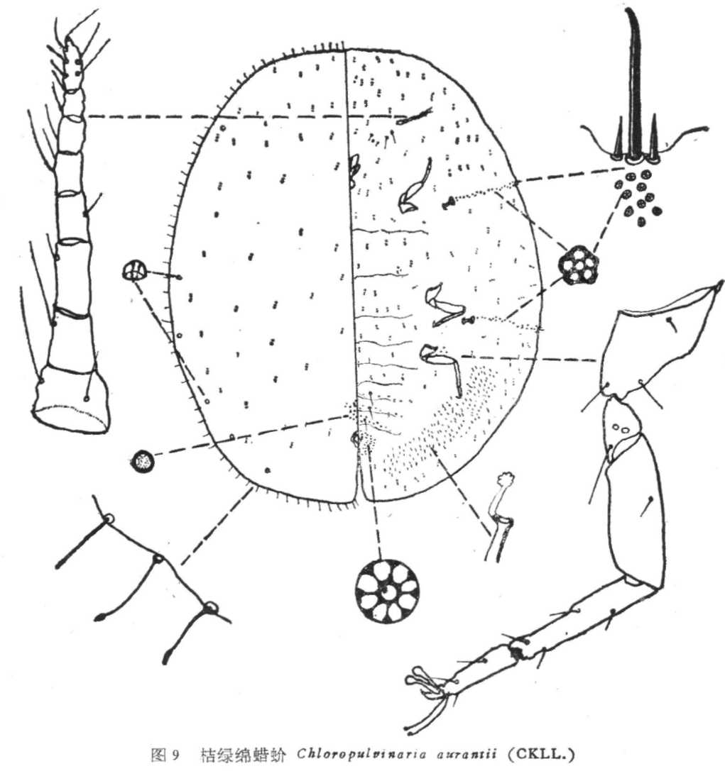 体长约3.0—3.5mm,有时最小只1.75mm。寄生于竹枝腋鞘下,体外包一卵形蜡囊。触角2节,基节宽而扁,常生有3根细毛,端节长而粗,顶端生有一群毛。足完全消失或仅见小凹窝以示足之位置。前和后气门发达,气门口附近有一群三孔腺分...
