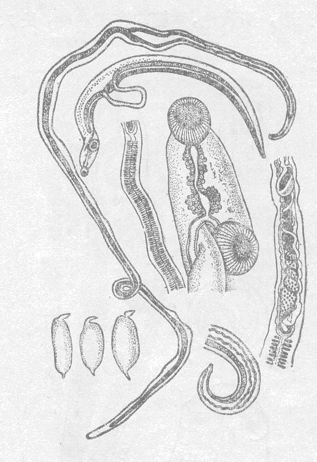 4.2-8.0×0.43-0.47毫米。食道有二膨大处,肠支自腹吸盘处开始分成二支,距尾端1.2毫米处又合为一。睾丸细小,数目达68-80个,作双行不规则排列。生殖孔位于腹吸盘之后。雌