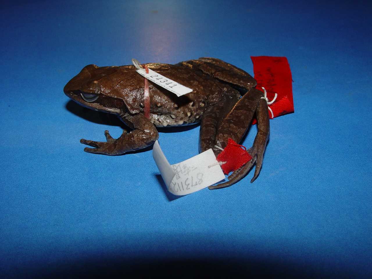 角蟾Megophrys major相近。但本种吻端较突出,颞褶后部膨