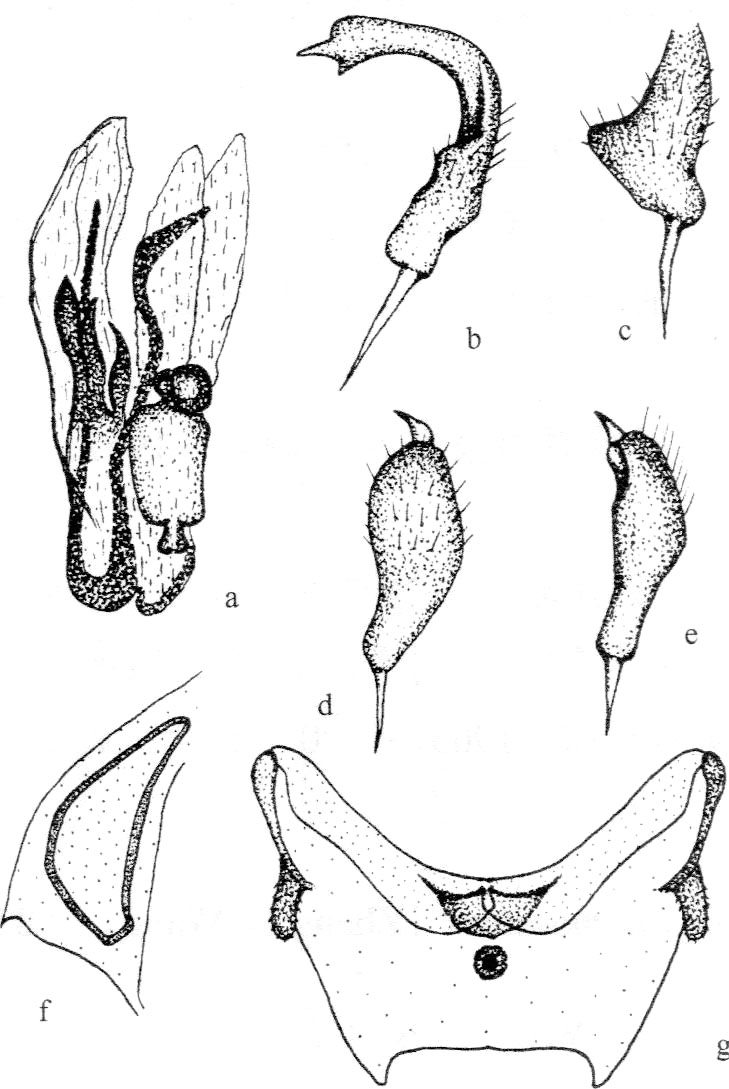 区域有时黑褐色,沟两侧区域后部在后缘嵴前可见很浅而不甚规则的小网格状微刻区,此构造...