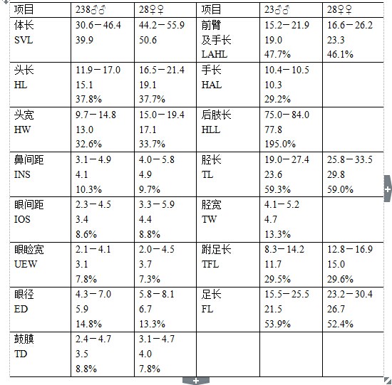 形态 依据四川木里(30雄、15雌、15亚成体及各期蝌蚪)标本。