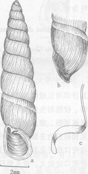 貝壳呈塔形,結实。壳高26毫米,寬17.5毫米。