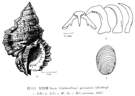 形态描述 贝壳长纺锤形,背腹稍扁。壳质坚实。