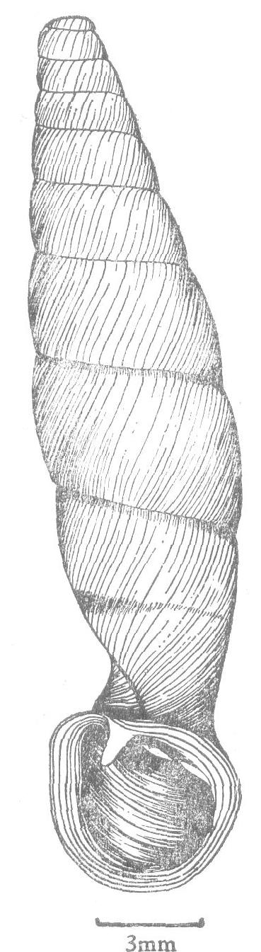 贝壳中等大小,壳质薄,但坚实,半透明,有光泽,左旋,呈长纺锤形。有10-12个