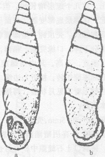 贝壳中等大小,左旋,壳质稍厚,坚实,不透明,有光泽,呈长纺锤形。有10个