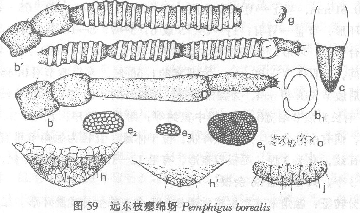 :体卵圆形,长2.95,体宽2.69mm。活体黄白色。玻片标本头部黑色,前胸两缘褐色,胸、腹部淡色,无斑纹,触角灰褐色,喙、足各节黑褐色,尾片、尾板及生殖板淡色。体表光滑,头背面有皱曲纹。复眼黑褐色,由三小眼面组成,头盖缝淡色。体背有明显...