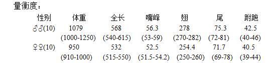 雄性成鸟(繁殖羽):头和颈呈辉亮的翠金绿色,颏近黑色;颈基有一道狭窄的白色领环;上背和两肩密杂以褐与灰相间的波状细