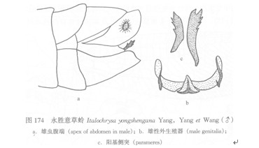 。足黄绿色,具黑褐色毛,跗节及爪黑褐色,爪基部弯曲。前后翅皆膜质、宽大...