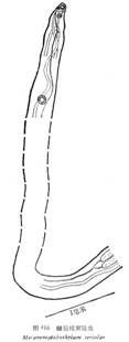 体长为195.30。 前端稍尖如矢状,其余身体各处宽窄几乎相等约为0.374。(区別于M.guernei(Monioz...