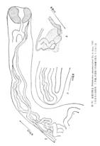 体线形,1条完整的标本长度为52.445,两端均钝圆,体前部膨大,在肠叉后体宽为1.020—1.275,后体部宽0.680—1.003。 ...