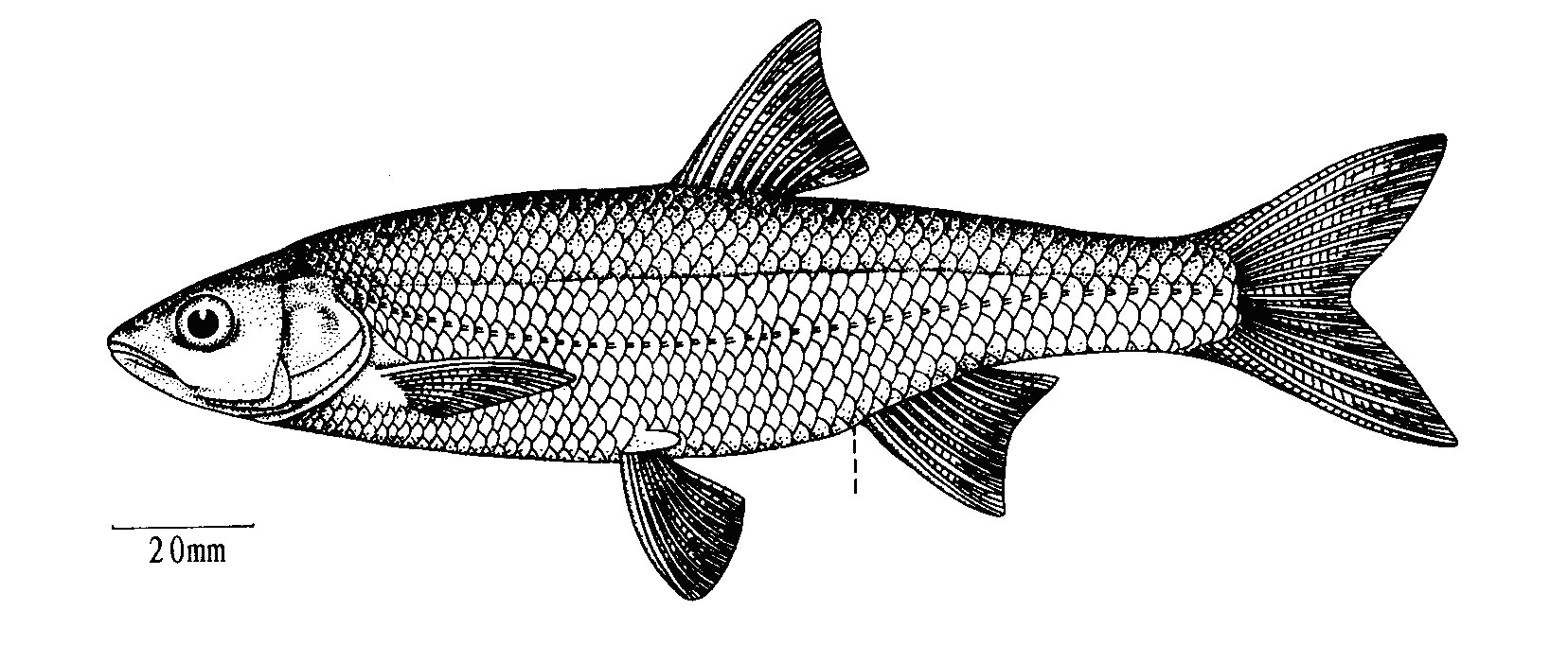 背鳍iii – 7;臀鳍iii – 8—11;胸鳍i – 15—16;腹鳍ii - 8。侧线鳞{[45(4-v)/(8-9)]52};背鳍前鳞20—24;围尾柄鳞14—16。第一鳃弓外侧鳃耙9—12。下咽齿2行,2?5—5?2,也有3?5—5?20脊椎骨4+3...