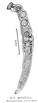 口吸盘亚端位,如盘状,直径0.243,深0.071。腹吸盘位于体前1/3的中央,圆形,0.214直径,离口吸盘0.1...