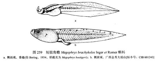 形态 依据香港(5雄、2雌)及广西金秀大瑶山(16雄、3雌、蝌蚪)标本。