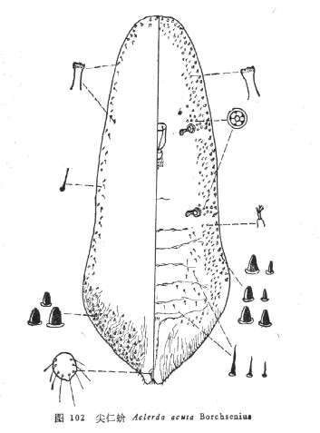 体中部或稍偏向头端。触角扁盘状,其顶端有2根粗刺和2根短小细刺及2根刺毛。模式标本记载,...