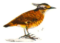 :头顶至后颈中央冠纹黑色,前额及冠纹两侧皮黄色,眉纹近白,各羽均缀以黑色端斑,呈鳞状;后枕部两侧羽毛突出,具皮黄色和黑色