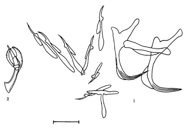 体分开,长0.014-0.017mm,宽0.010-0.021mm。