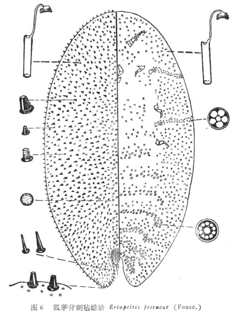 体最宽,0.32-0.35。头领发达,宽0.16-0.17,具有头棘19枚,左右腹角棘各4枚排成两列、棘较长大密集,66-70×10-12微米,其余11枚棘较短小、等...