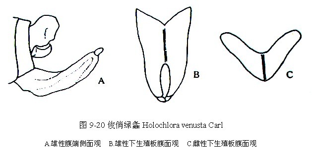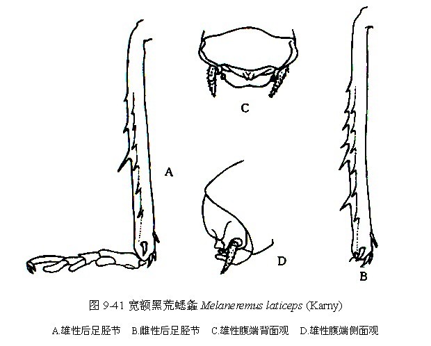 体小,光滑。头顶较宽,约为触角第1节的2倍。前足和中足胫节腹面各具5对距(包括端距),中足胫节背面内侧具1端距。后足股节腹面内、外缘各具4~6个刺;雄性后足胫节背面内缘具3个刺,外缘具6个刺,雌性后足胫节背面内、外缘各具6个刺。腹部近基部不狭缩。雄性第l0腹节...