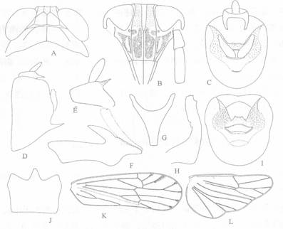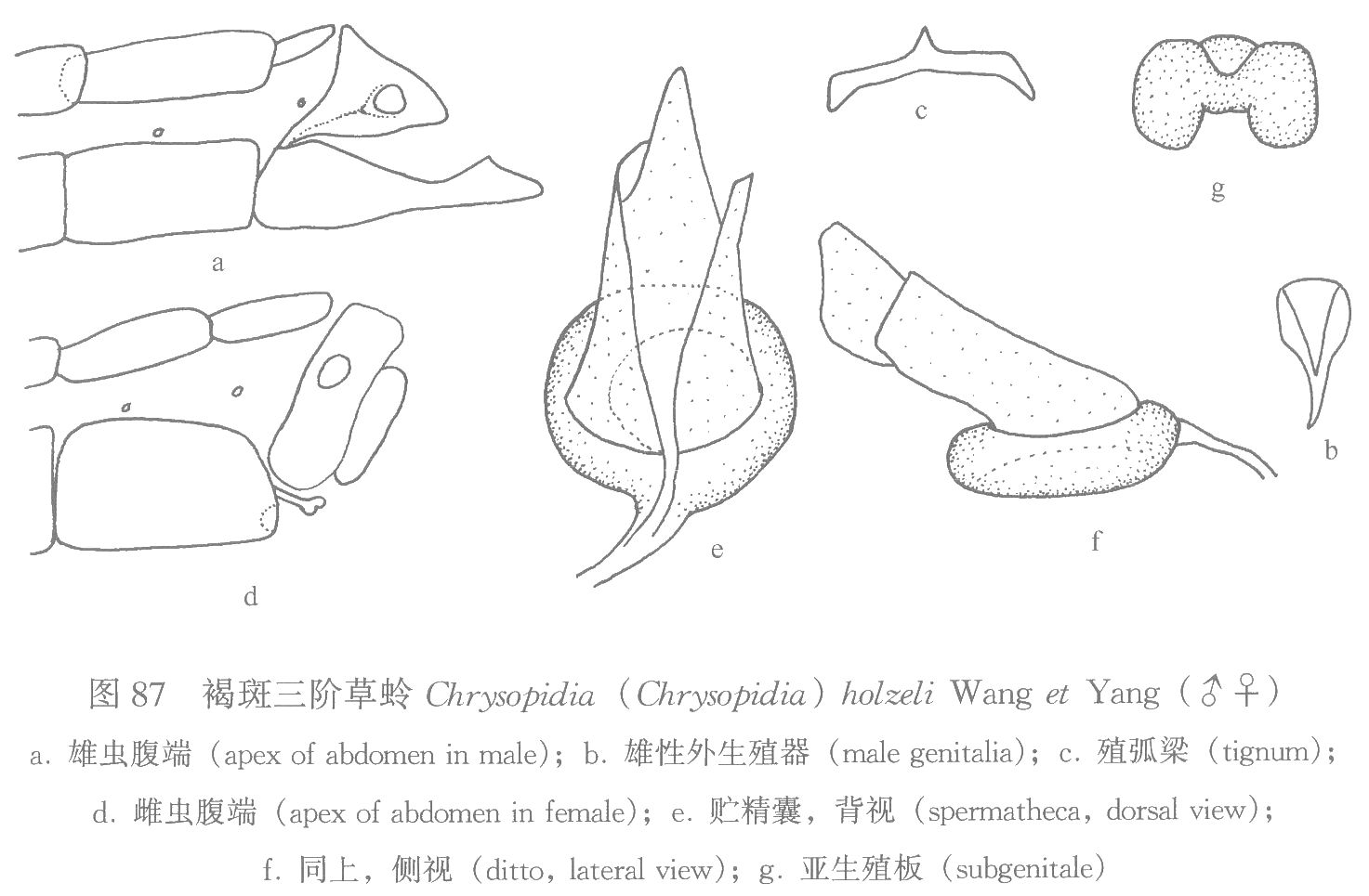 通常淡黄褐色。头顶、前中胸背板及额的基部淡棕色,额端部2/3暗棕色,嵌有淡黄色斑点;后唇基棕色,端部色较暗;胸足淡黄褐至棕色,前、中足胫节具黑环;触角第1节端部和第2节基部黑色。前翅透明,淡灰白色,翅脉上颗粒状突起及各端脉顶端黑色。腹部黑色,各节后缘淡黄褐色。...