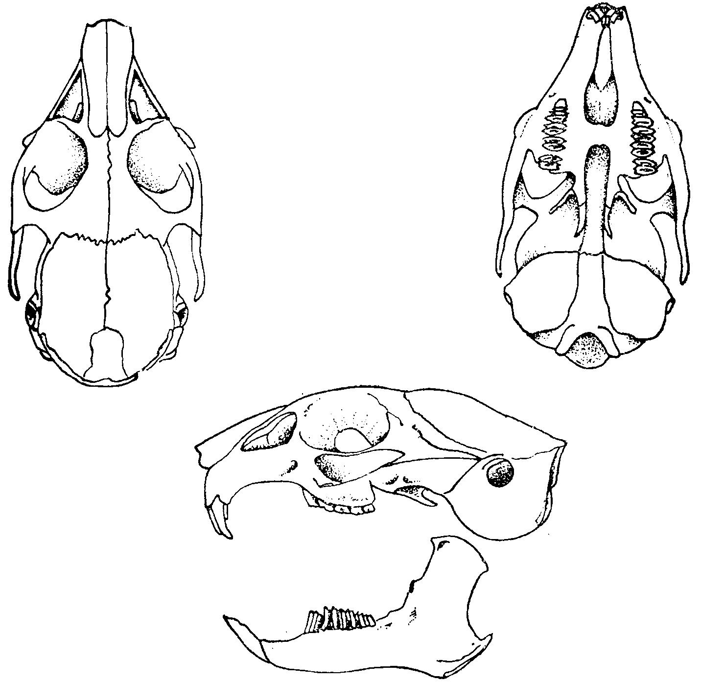 31~38mm;颧宽19~23mm;乳突宽14.7~17.4mm;眶间宽11~13.2mm;鼻骨