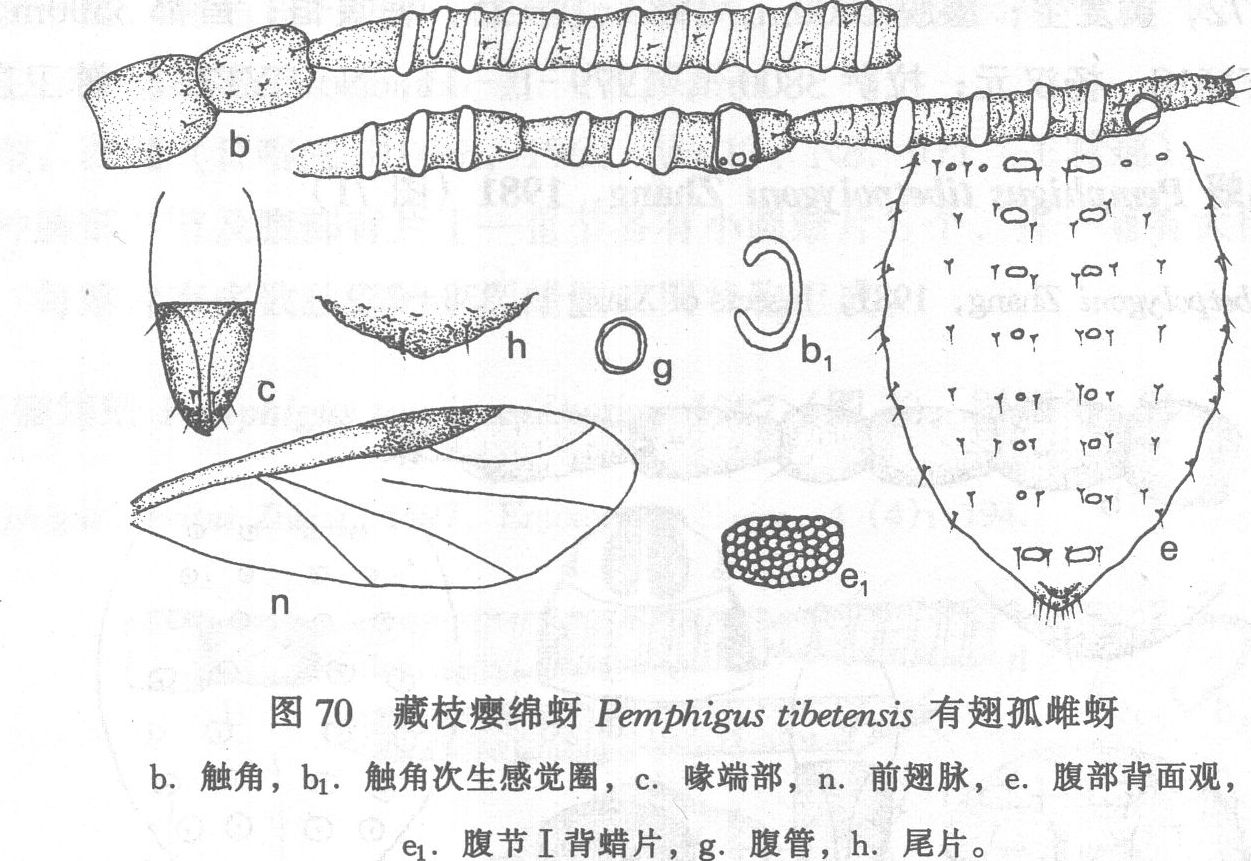 :体椭圆,长1.79,宽1.25mm。玻片标本头、胸部黑色,腹部淡色,有明显黑斑,腹部背片Ⅰ—Ⅳ各有零星中侧斑或溶合呈带,Ⅴ—Ⅷ各呈宽带,Ⅰ—Ⅵ各独立小缘斑,Ⅶ—Ⅷ带横贯全节;触角、喙、足各节、尾片、尾板、生殖突及生殖板黑色。体表光滑...
