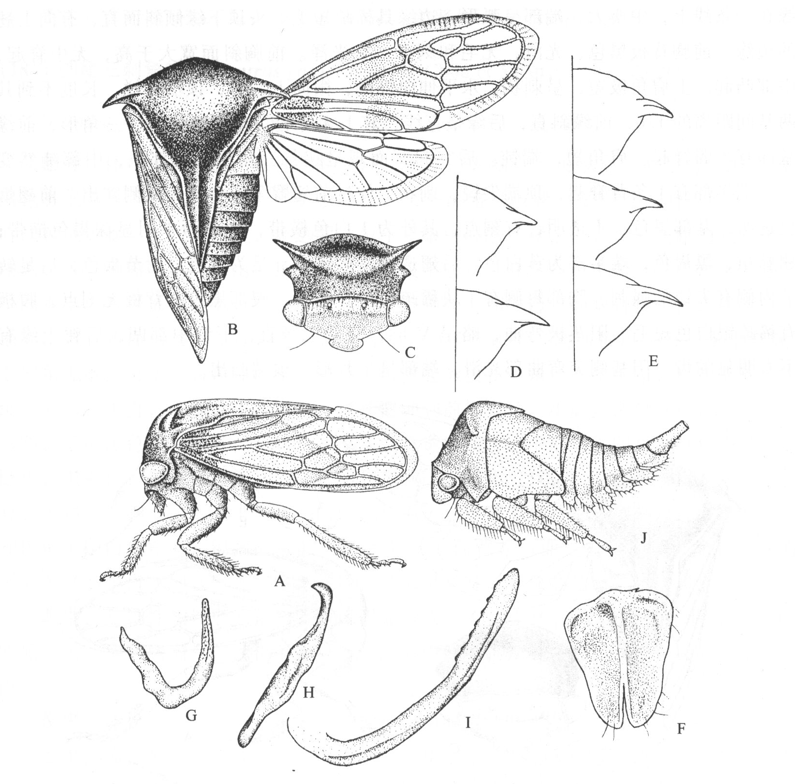 的2倍,黑色,闪光,不被毛,元刻点。头基部略呈弧形。复眼卵圆形,红褐色或红色,有黄色边眶。单眼浅黄色,位于复眼中心联线稍上方,彼此间距离大于到复眼问距离。额唇基