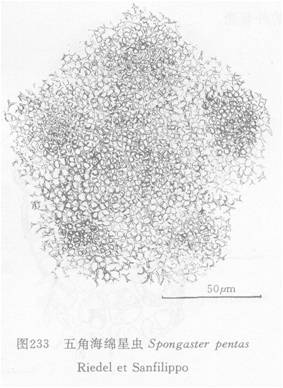 与圆形的中央盘距离大致相等,远心段形成扇形的暗区,因此,全壳连中央盘共有六个暗区,但某些标本(原著图版Ⅹ-5)可能年龄较大,生