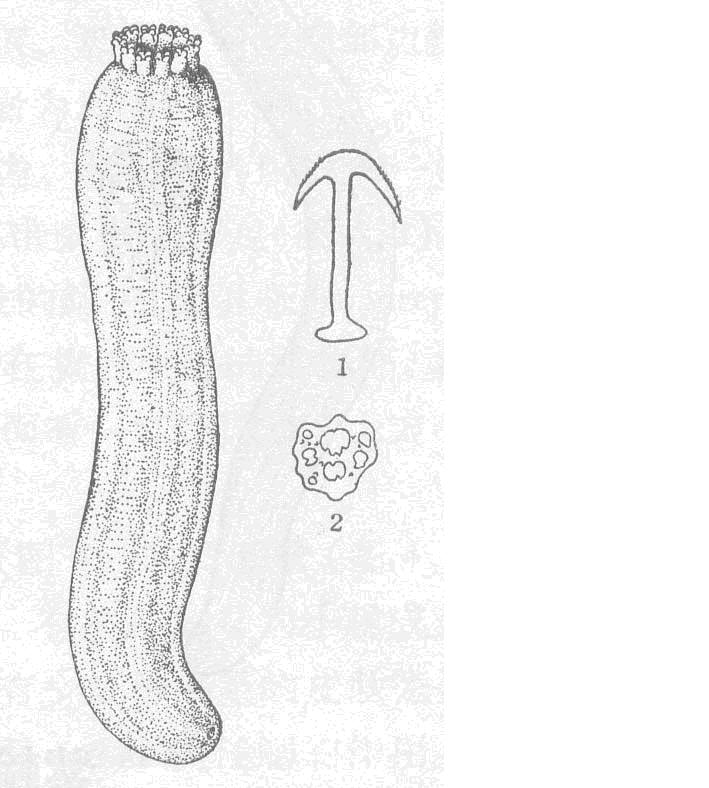 体壁薄,半透明。体壁内的骨片有锚、锚板和微小颗粒体。身体前端的锚